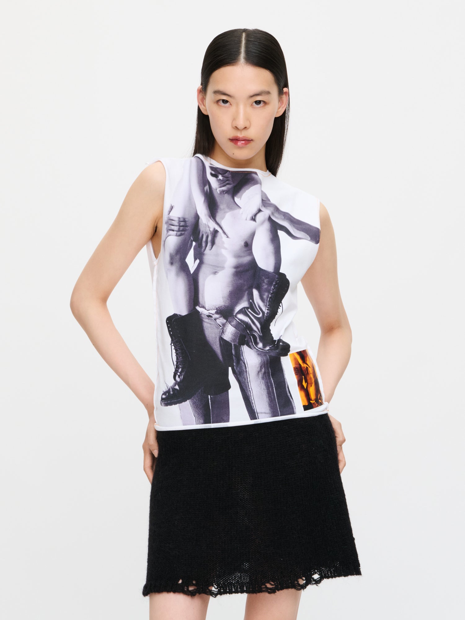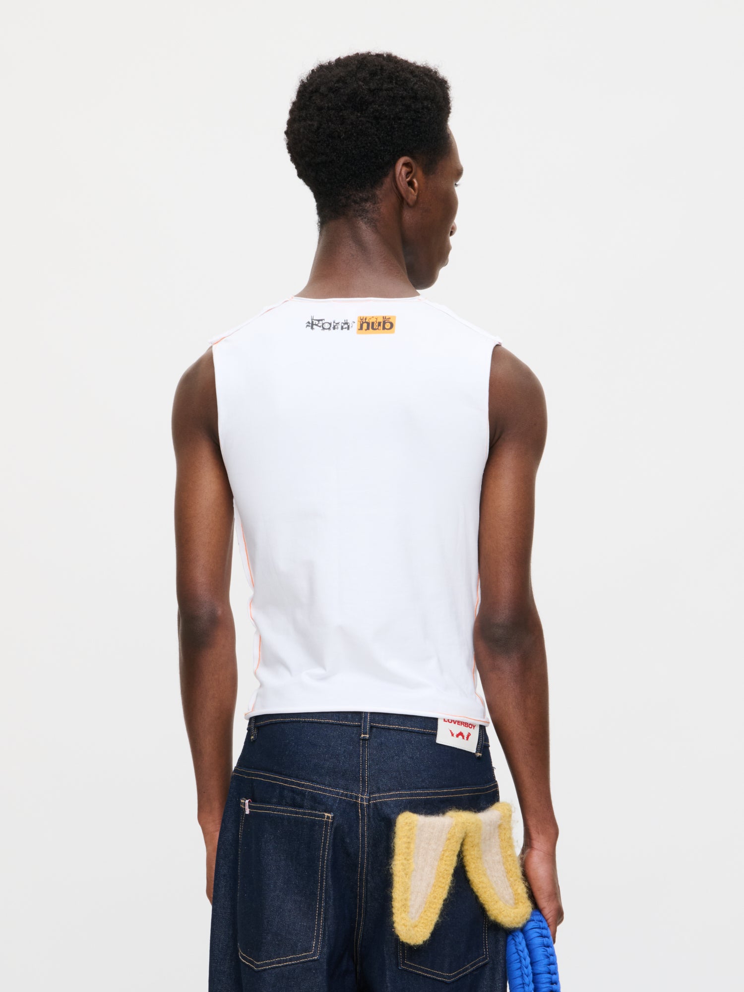 The Collaboration with the iconic website is delivering some truly sexy LOVERBOY moments. This snug Tank Top features P*rnhub inspired photographic print all over its front. and keeps in plain in the back.